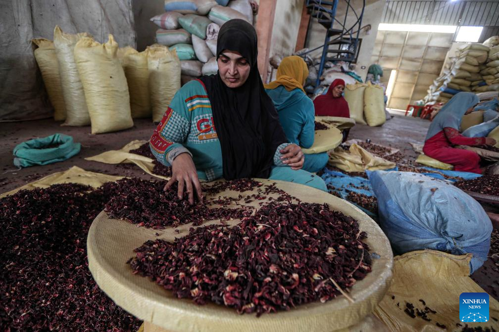 Workers process medicinal herbs at a company in Fayoum, Egypt, on Dec. 9, 2024. (Xinhua/Ahmed Gomaa)