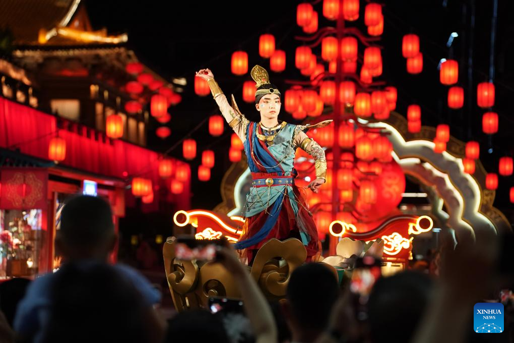 Performers parade at a Tang Dynasty-themed scenic area in Xi'an, northwest China's Shaanxi Province, May 19, 2024.