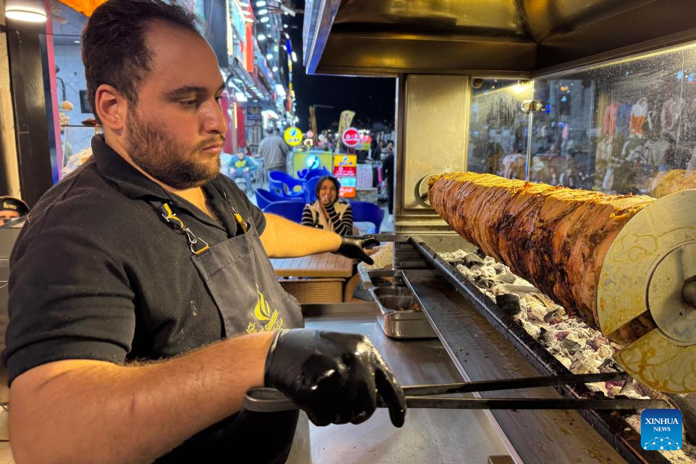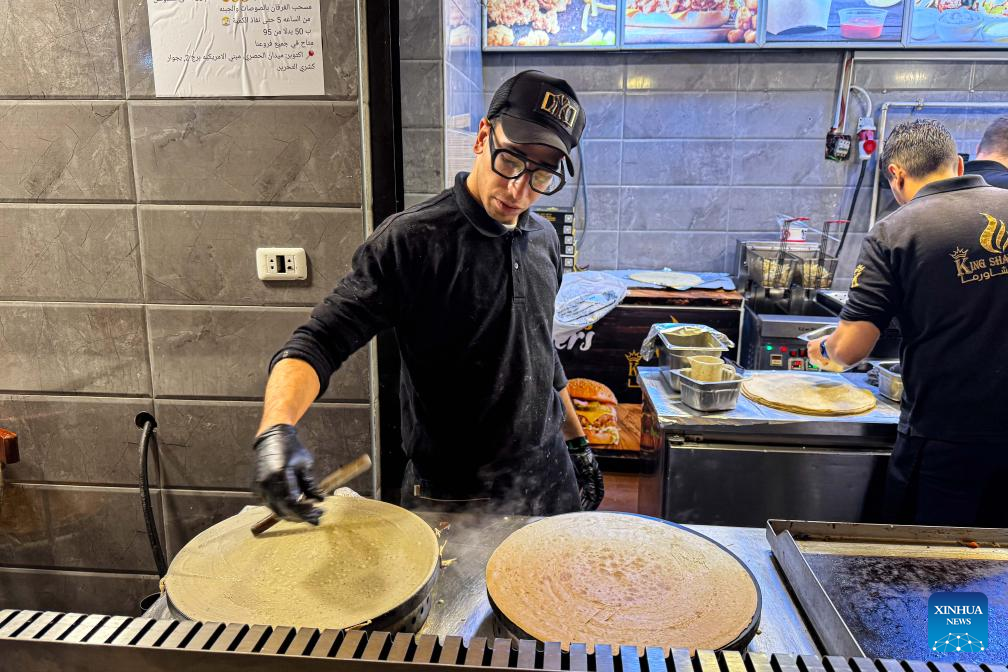 CAIRO, Dec. 25 (Xinhua) -- Ahmed Enaba, a master of Middle Eastern dish Shawarma and a Syrian by birth, embarked on a new chapter in Egypt in 2016 when he opened a restaurant in 6th of October City, a bustling hub near Cairo.