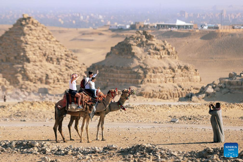 Tourists visit the Giza Pyramids scenic spot in Giza, Egypt, on Jan. 2, 2025. Egyptian Prime Minister Mostafa Madbouly said Wednesday that the country received a record high of 15.7 million tourists in 2024, according to a statement issued by the Egyptian cabinet. (Xinhua/Ahmed Gomaa)