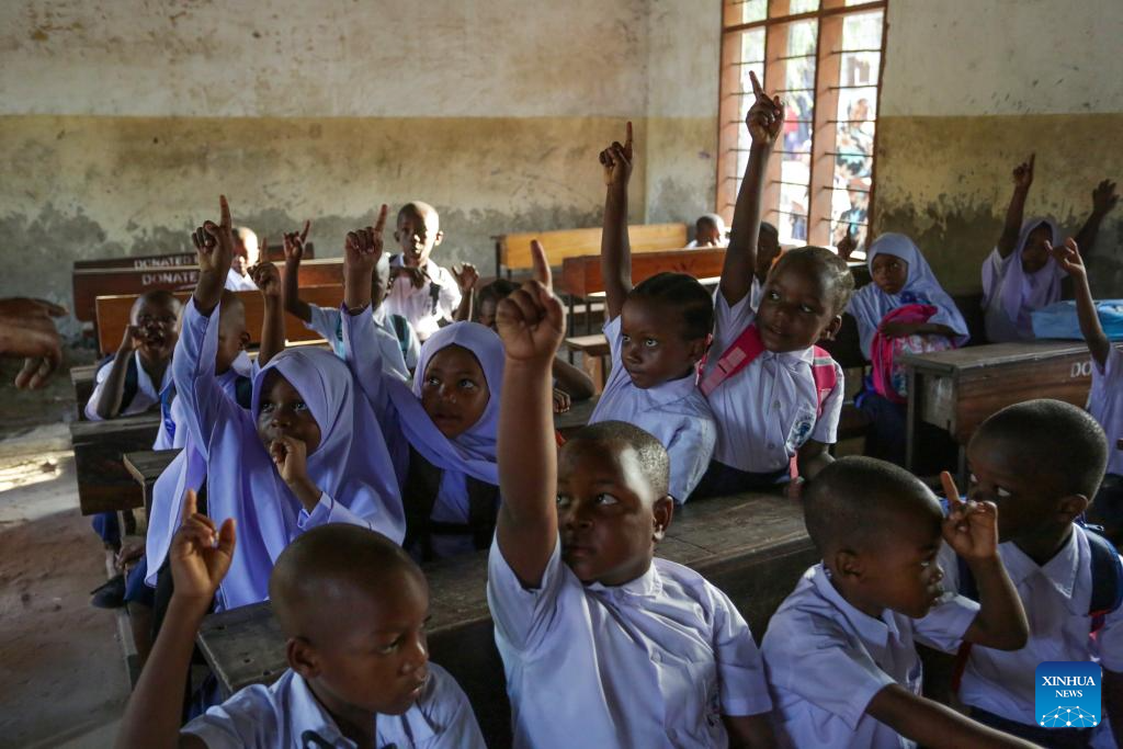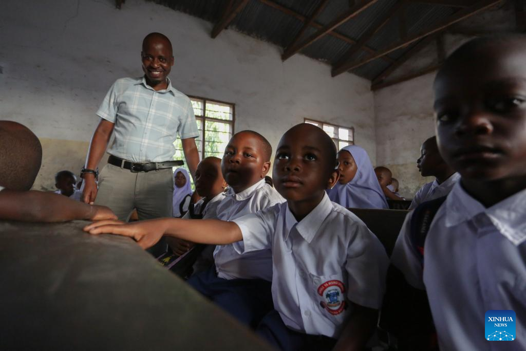Tanzanian first-grade pupils attend a class on their first day of school in Dar es Salaam, Tanzania, on Jan. 13, 2025. Tanzanian elementary school students marked the first day of school on Monday. (Xinhua/Emmanuel Herman)