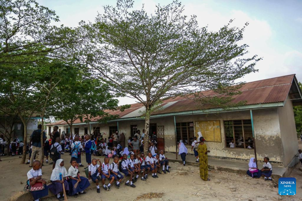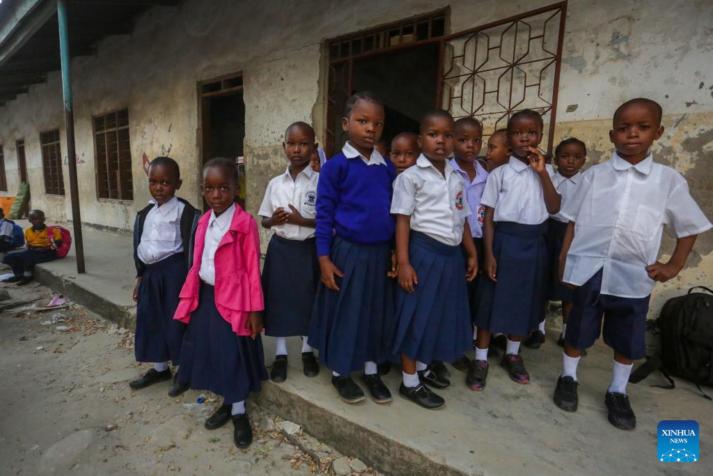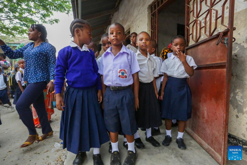 Tanzanian first-grade pupils mark their first day of school in Dar es Salaam, Tanzania, on Jan. 13, 2025. Tanzanian elementary school students marked the first day of school on Monday. (Xinhua/Emmanuel Herman)
