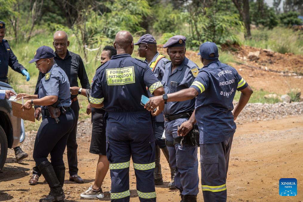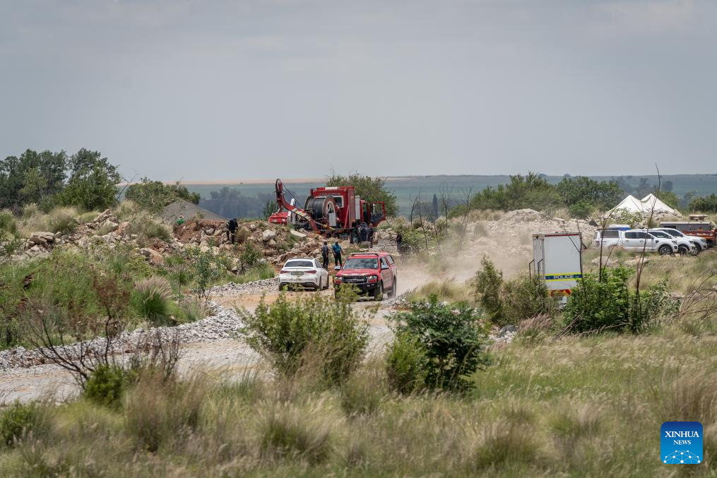 Police officers and forensic pathology service members work during a rescue operation at an abandoned gold mine in Stilfontein, North West Province, South Africa, on Jan. 13, 2025. (Photo by Shiraaz Mohamed/Xinhua)