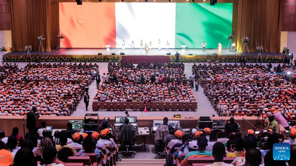 This photo taken on Jan. 17, 2025 shows the opening ceremony of the first edition of the National Cotton and Cashew Producers' Day of Cote d'Ivoire, Abidjan, Cote d'Ivoire. The event aimed to acknowledge the achievements of national cotton and cashew producers and to enhance the value of these two crucial agricultural sectors for Cote d'Ivoire's economy. (Photo by Laurent Idibouo/Xinhua)