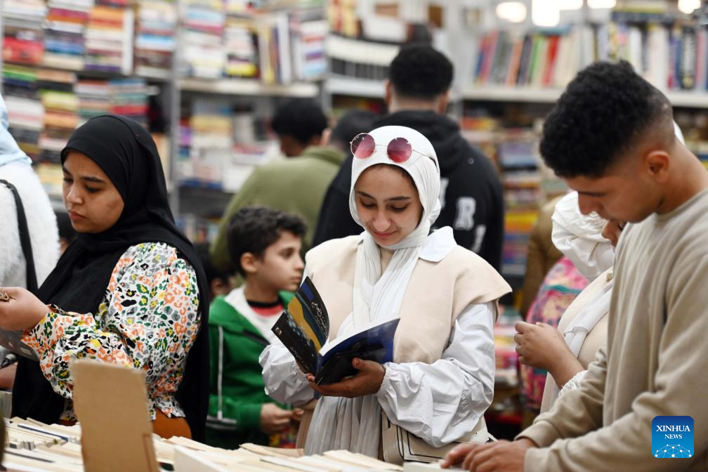 People read books at the 56th Cairo International Book Fair (CIBF) in Cairo, Egypt, on Jan. 24, 2025. The CIBF, which runs until Feb. 5, opens to the public on Friday, with Oman as this year's guest of honor. Launched in 1969, the CIBF is considered the largest and oldest book fair in the Middle East and second only to Germany's Frankfurt Book Fair globally. (Xinhua/Ahmed Gomaa)