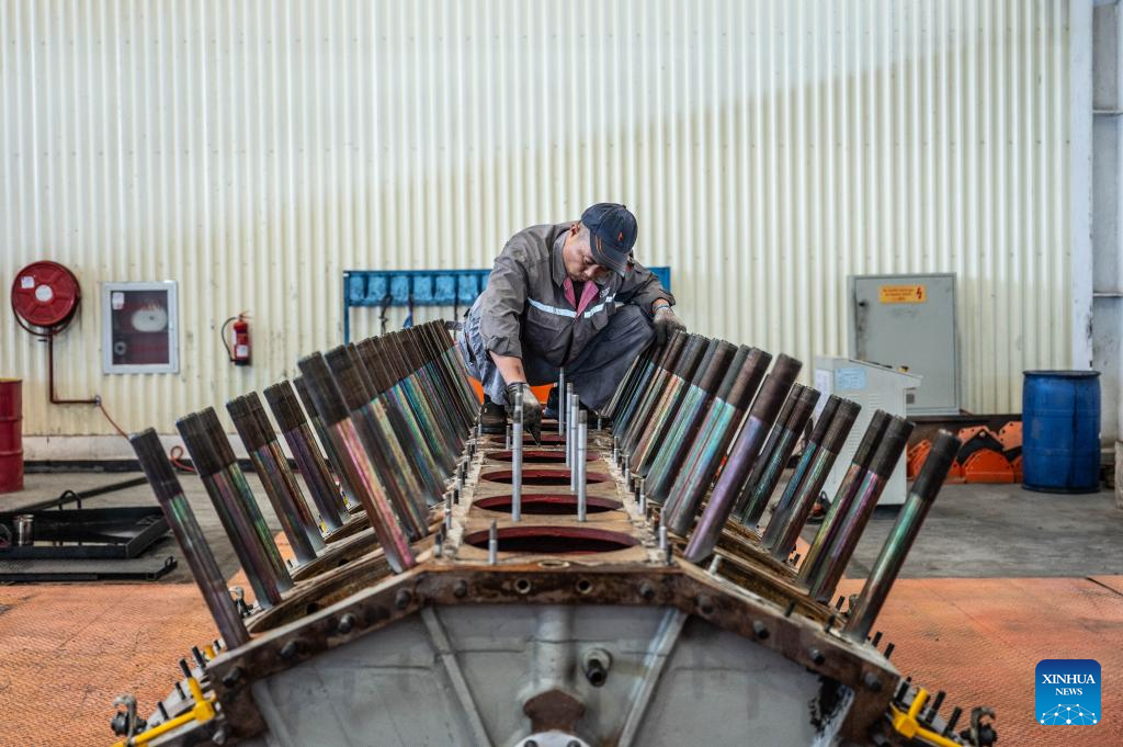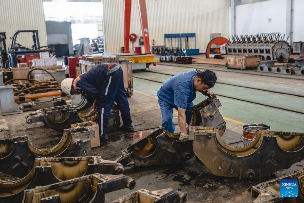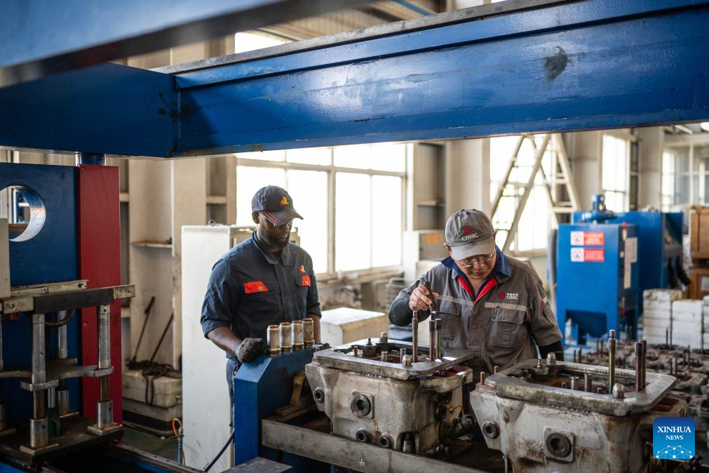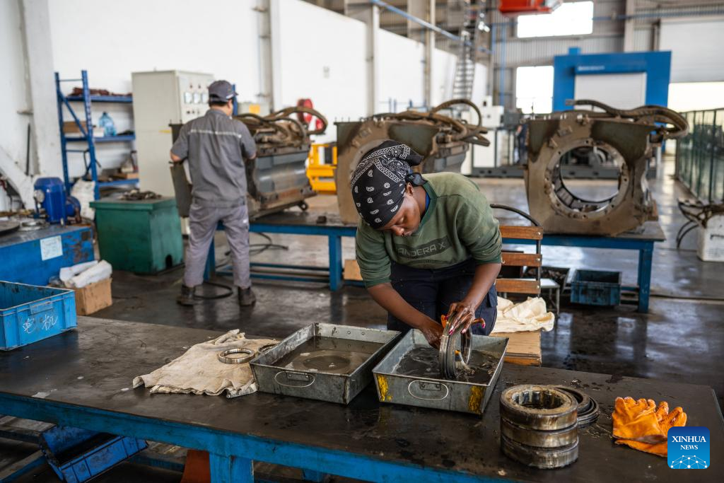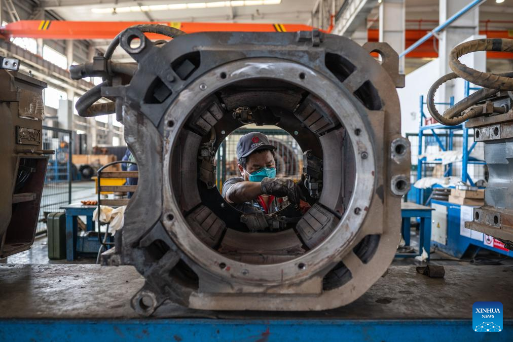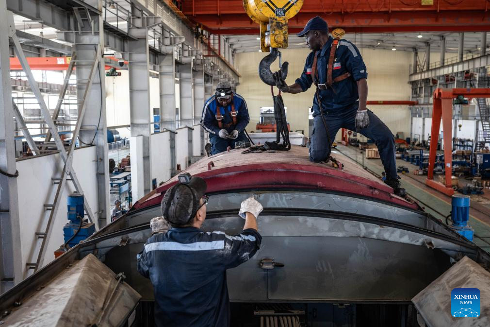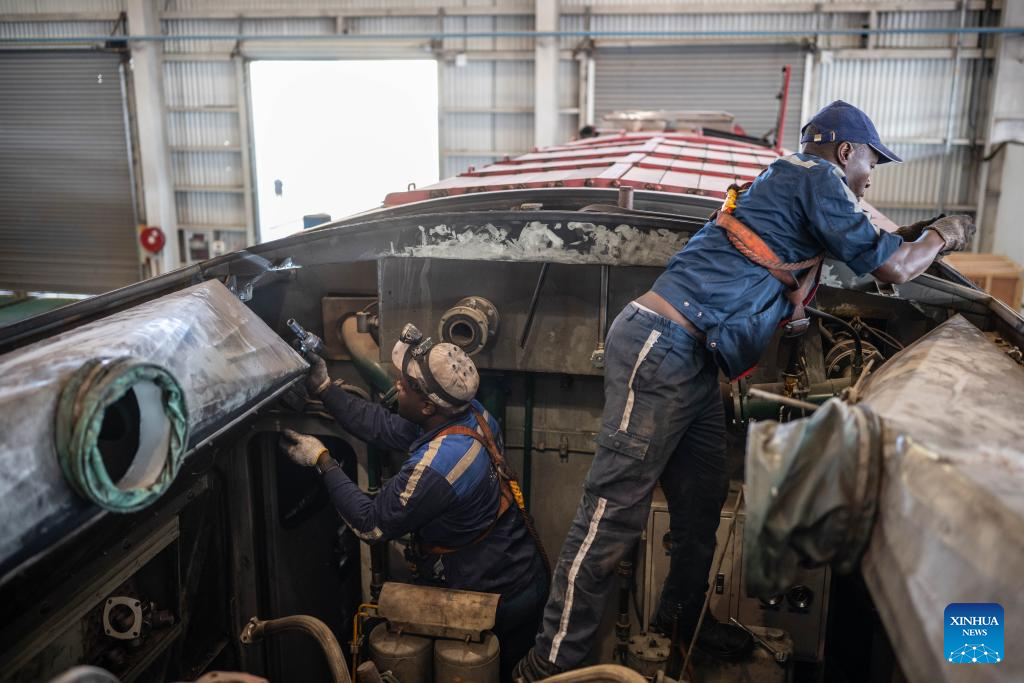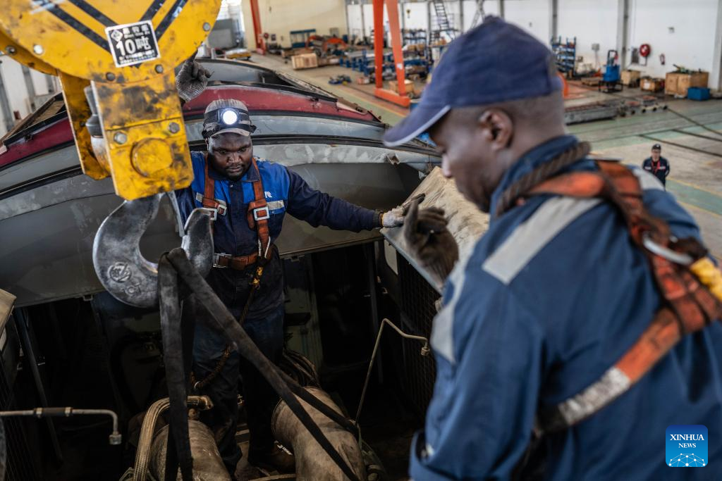 Maintenance workers dismantle locomotive parts in the repair workshop of the Mombasa-Nairobi Railway in Nairobi, Kenya, Jan. 23, 2025. Launched in May 2017, the Mombasa-Nairobi Railway, spanning approximately 480 km, connects the large Indian Ocean city of Mombasa with Nairobi, the country's capital and largest city. It is Kenya's first modern railway since independence and is hailed as a flagship project under the Belt and Road cooperation between China and Kenya.