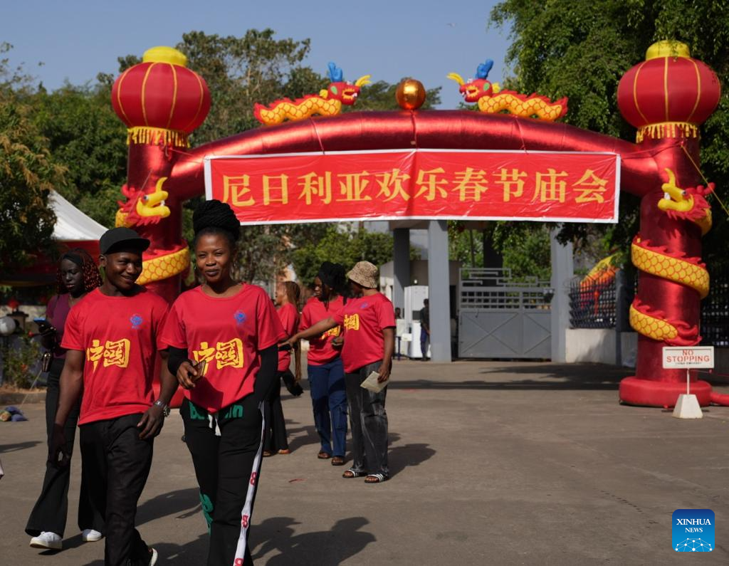 People visit a temple fair in celebration of the upcoming Spring Festival, or the Chinese Lunar New Year, in Abuja, Nigeria, Jan. 25, 2025.(Xinhua/Yang Zhe)
