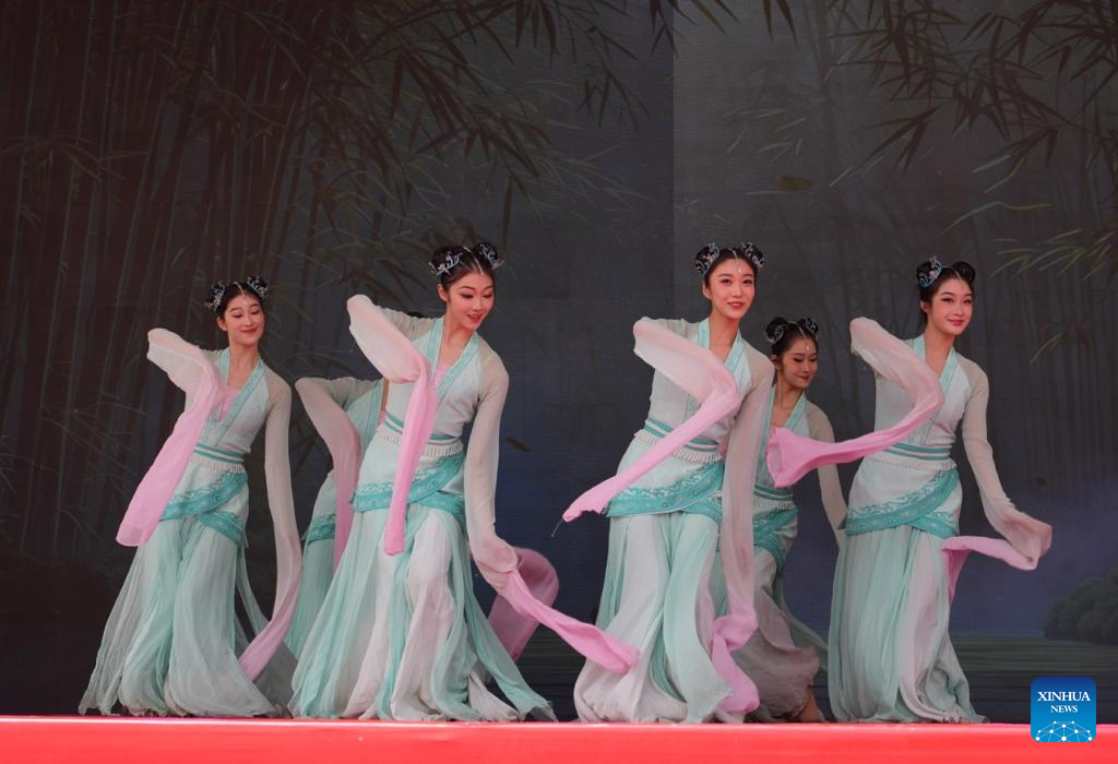 Chinese dancers perform at a temple fair in celebration of the upcoming Spring Festival, or the Chinese Lunar New Year, in Abuja, Nigeria, Jan. 25, 2025.(Xinhua/Yang Zhe)