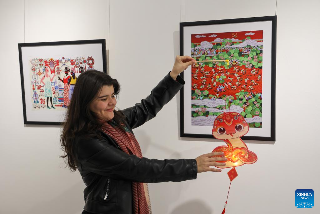 A Moroccan girl makes a snake-shaped lantern at a Lantern Festival celebration event in Rabat, Morocco, on Feb. 12, 2025. (Xinhua/Huo Jing)