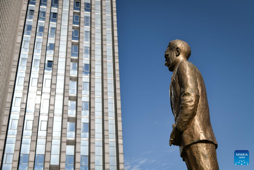 This photo taken on Feb. 12, 2025 shows a statue of Haile Selassie I at the African Union (AU) Headquarters in Addis Ababa, capital of Ethiopia. (Xinhua/Han Xu)
