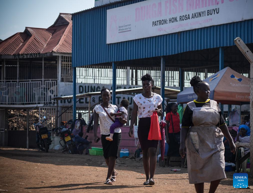 This photo taken on Feb. 19, 2025 shows people visiting a fish market at the shore of Lake Victoria in Kisumu, Kenya. Kisumu, nestled on the picturesque shores of Lake Victoria in western Kenya near the equator, stands as the nation's third-largest city and the busiest port on the lake. (Xinhua/Li Yahui)