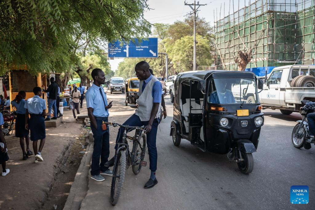 Students communicate with each other on the street in Juba, South Sudan, on Feb. 25, 2025. (Xinhua/Wang Guansen)