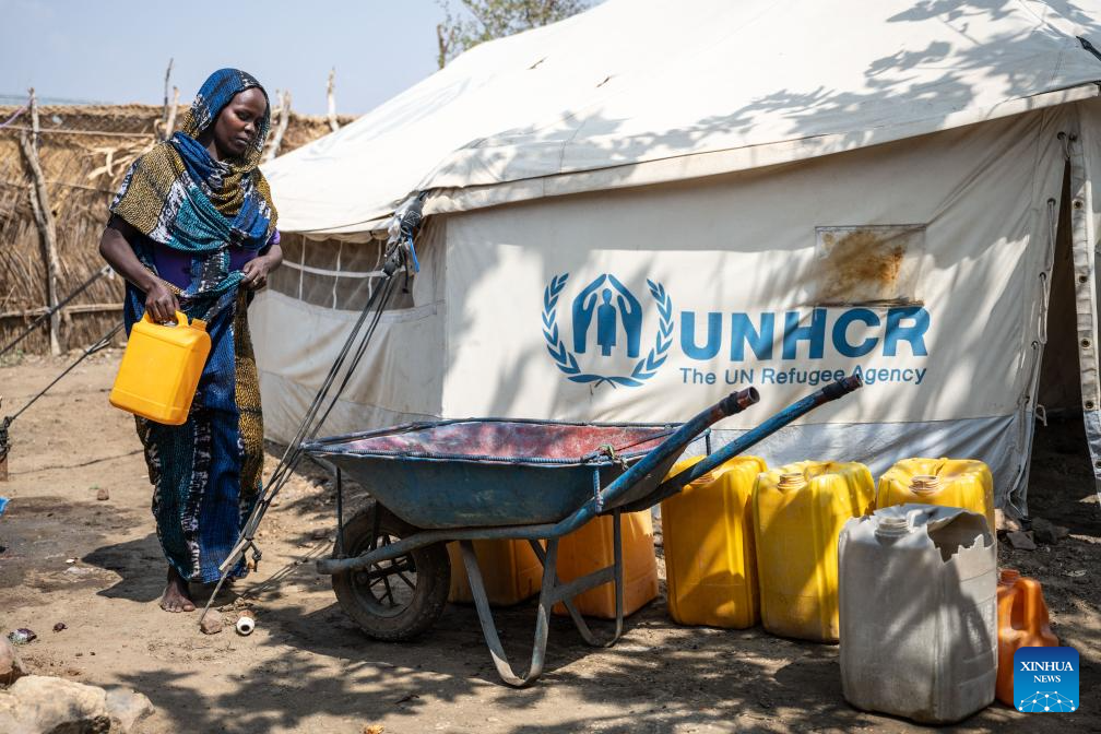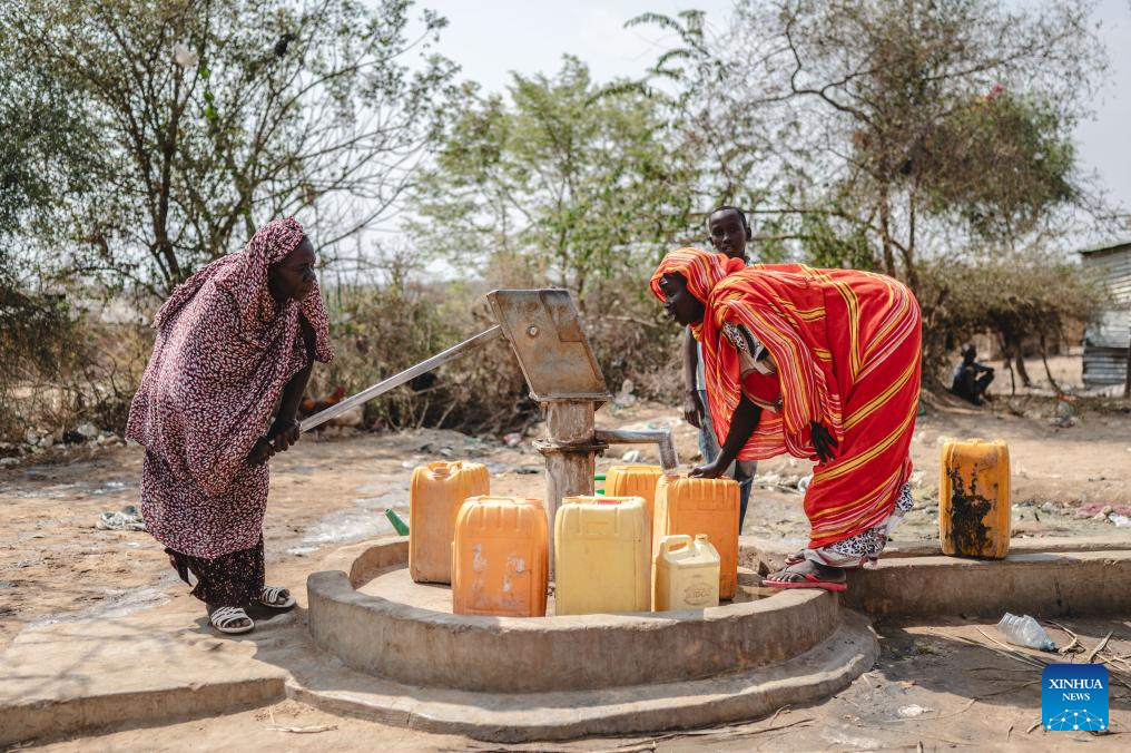 Sudanese refugees fetch water at the Gorom refugee settlement on the outskirts of Juba, South Sudan, Feb. 27, 2025. The Gorom refugee settlement currently hosts approximately 16,000 refugees, primarily from Sudan, with some from Ethiopia and Burundi. The number of Sudanese refugees in Gorom continues to rise. (Xinhua/Wang Guansen)