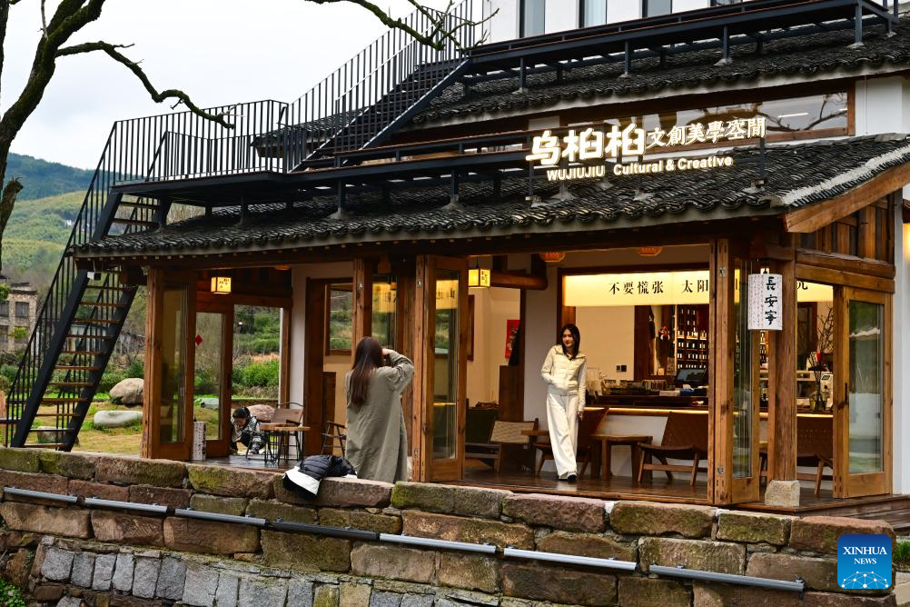 A tourist poses for a photo at Tachuan Village, Hongcun Township of Yixian County in Huangshan City, east China's Anhui Province, March 13, 2025. (Xinhua/Zhou Mu)