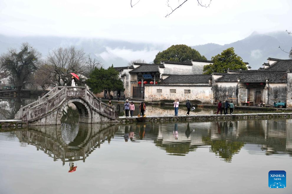 Tourists enjoy themselves at Hongcun Village, Hongcun Township of Yixian County, Huangshan City, east China's Anhui Province, March 14, 2025. (Xinhua/Zhang Chuanqi)