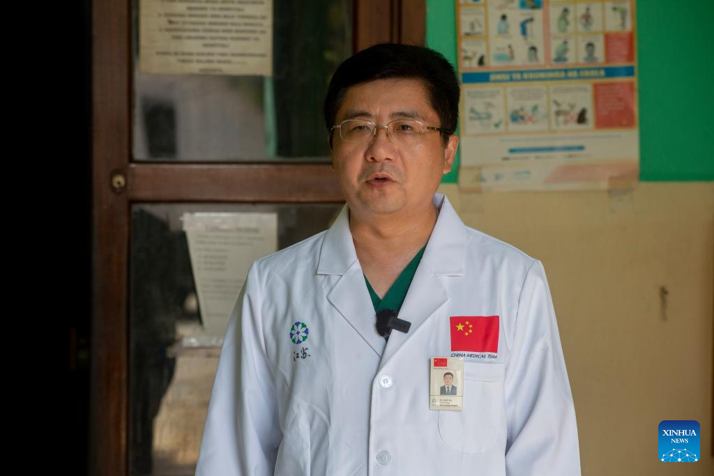 Chen Wei, leader of the 34th batch of the Chinese medical team in Zanzibar, speaks during an interview with Xinhua in Zanzibar, Tanzania on March 23, 2025. (Xinhua/Emmanuel Herman)