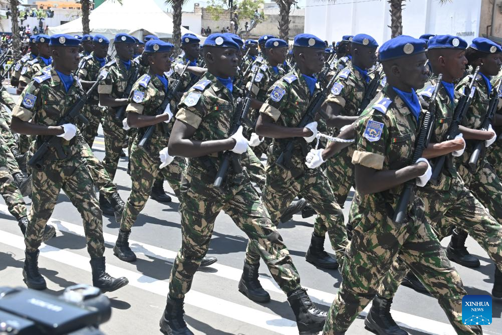 Senegalese soldiers participate in a military parade in Dakar, Senegal, on April 4, 2025. Senegal celebrated its 65th anniversary of independence on Friday with a grand parade on Mamadou Dia Boulevard in the capital of Dakar, presided over by the West African country's President Bassirou Diomaye Faye. (Photo by Papa Demba Gueye/Xinhua)