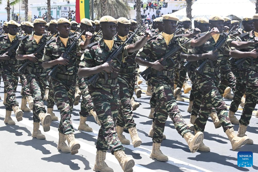 DAKAR, April 4 (Xinhua) -- Senegal celebrated its 65th anniversary of independence on Friday with a grand parade on Mamadou Dia Boulevard in the capital of Dakar, presided over by the West African country's President Bassirou Diomaye Faye.