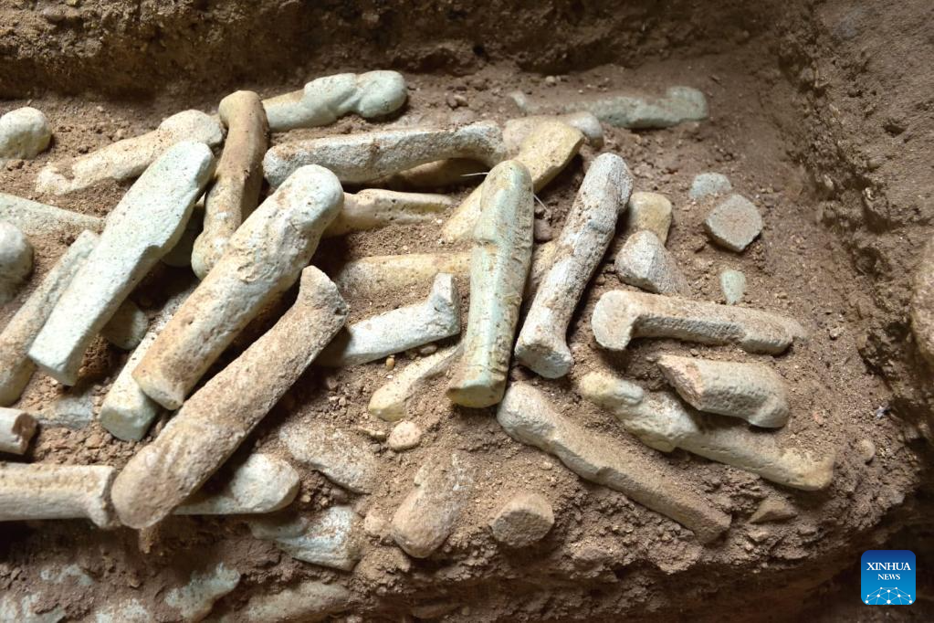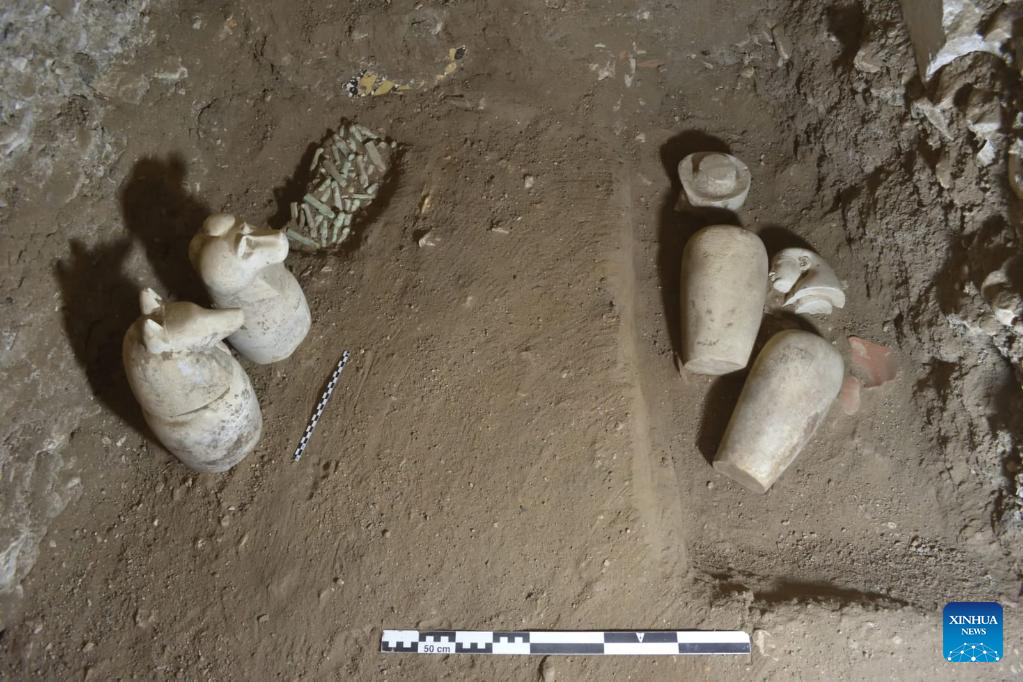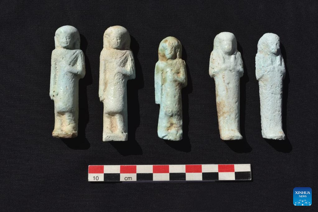 The undated photo shows artifacts uncovered from an ancient tomb in Luxor, Egypt. A joint Egyptian-French archeological mission uncovered tombs and buildings that reveal more history about the Ramesseum Temple in the southern city of Luxor, the Egyptian Ministry of Tourism and Antiquities said in a statement on Friday. (Egyptian Ministry of Tourism and Antiquities/Handout via Xinhua)