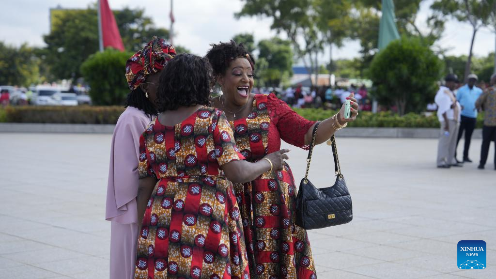 Women take selfies at Heroes' Square in Maputo, Mozambique, on the occasion of Mozambique National Women's Day, April 7, 2025. (Xinhua/Liu Jie)