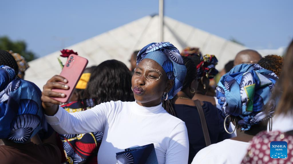 A woman takes a selfie at Heroes' Square in Maputo, Mozambique, on the occasion of Mozambique National Women's Day, April 7, 2025. (Xinhua/Liu Jie)