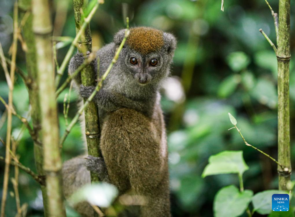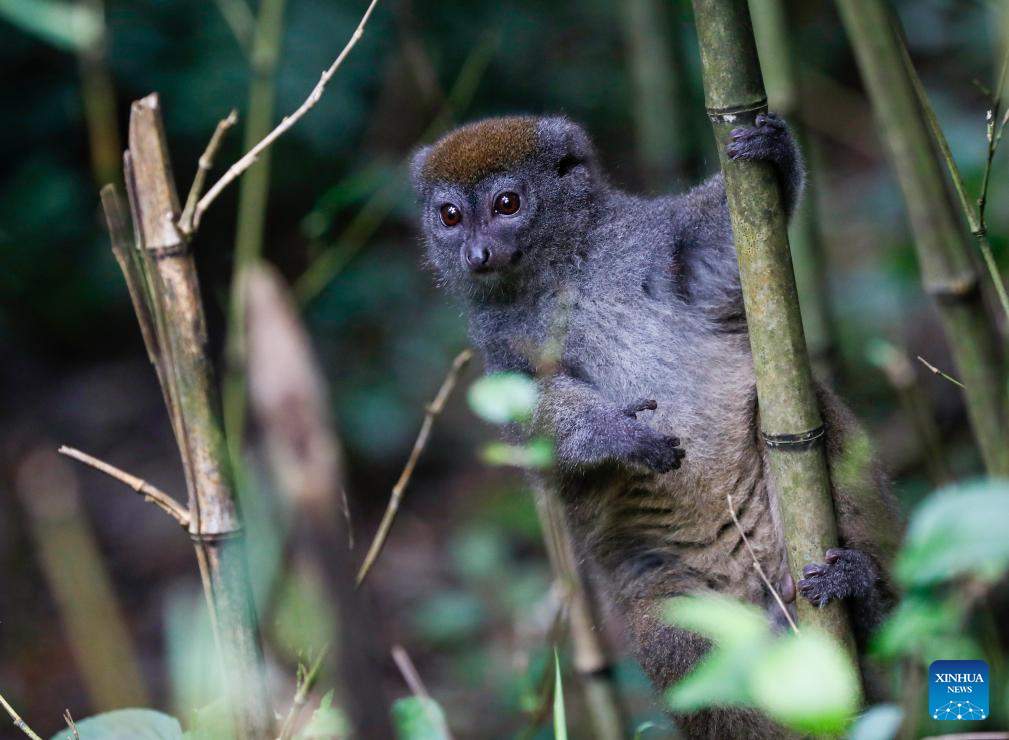 A bamboo lemur is seen at the Andasibe-Mantadia National Park in Madagascar, March 29, 2025. Madagascar, an Indian Ocean island country, boasts unique biodiversity due to its geographical isolation, with lemurs standing out as the most iconic group. According to the International Union for Conservation of Nature (IUCN), over 100 species of lemurs have been identified on the island. Some lemur species have been listed as critically endangered on the IUCN Red List of Threatened Species due to habitat destruction and illegal hunting in recent years. (Xinhua/Li Yahui)