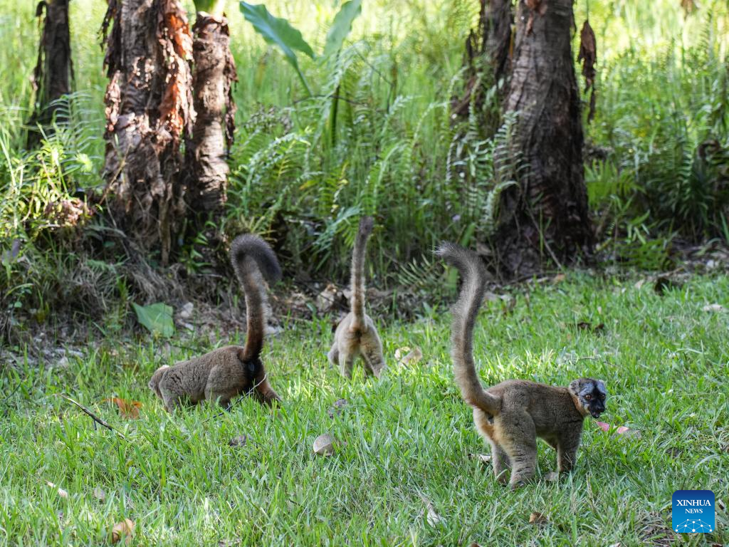 Common brown lemurs are seen at the Andasibe-Mantadia National Park in Madagascar, March 29, 2025. Madagascar, an Indian Ocean island country, boasts unique biodiversity due to its geographical isolation, with lemurs standing out as the most iconic group. According to the International Union for Conservation of Nature (IUCN), over 100 species of lemurs have been identified on the island. Some lemur species have been listed as critically endangered on the IUCN Red List of Threatened Species due to habitat destruction and illegal hunting in recent years. (Xinhua/Li Yahui)