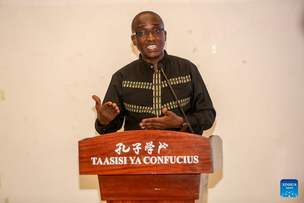 Musa Hans, the Tanzanian director of the Confucius Institute at the University of Dar es Salaam, delivers a speech during an activity celebrating Chinese Language Day in Dar es Salaam, Tanzania, on April 9, 2025. (Xinhua/Emmanuel Herman)