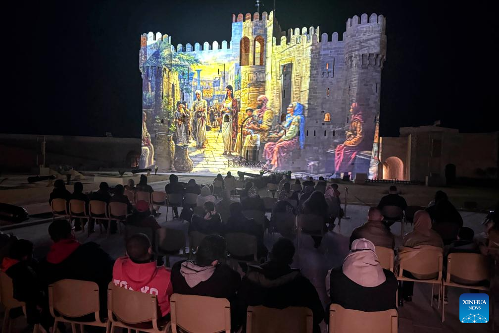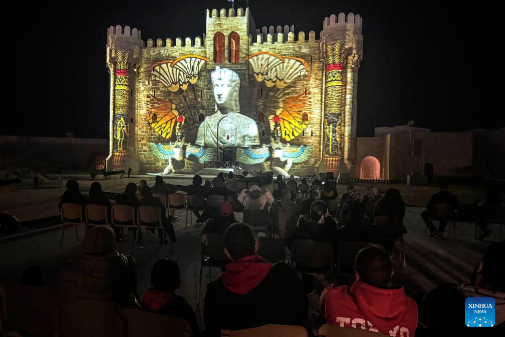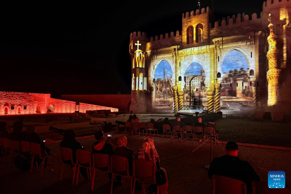 People watch a sound and light show, which tells the history of the founding of the ancient city of Alexandria, at the Qaitbay Citadel in Alexandria, Egypt, on April 11, 2025. (Xinhua/Ahmed Gomaa)