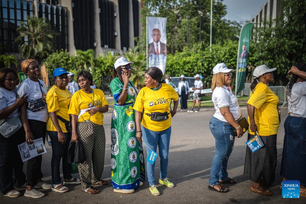 People attend a campaign for transitional president Brice Clotaire Oligui Nguema in Libreville, Gabon, on April 10, 2025. Gabon will hold its first presidential election on Saturday since a coup two years ago, marking the final phase of the country's political transition and the anticipated return to constitutional order. (Xinhua/Wang Guansen)