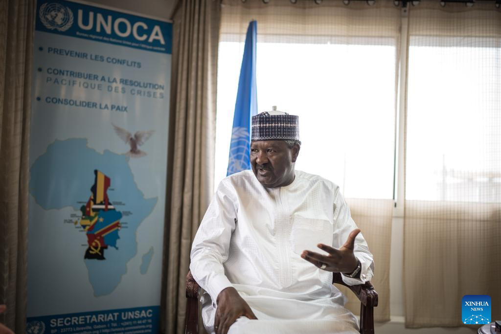 Abdou Abarry, UN secretary-general's special representative for Central Africa, speaks in an interview in Libreville, Gabon, on April 11, 2025. Gabon will hold its first presidential election on Saturday since a coup two years ago, marking the final phase of the country's political transition and the anticipated return to constitutional order. (Xinhua/Wang Guansen)