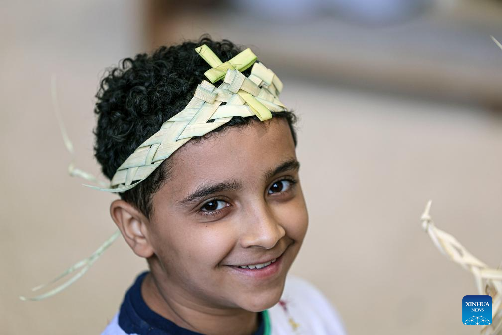 A boy is pictured at a mass held to celebrate Palm Sunday at the Cave Church in Cairo, Egypt, April 13, 2025. (Xinhua/Ahmed Gomaa)