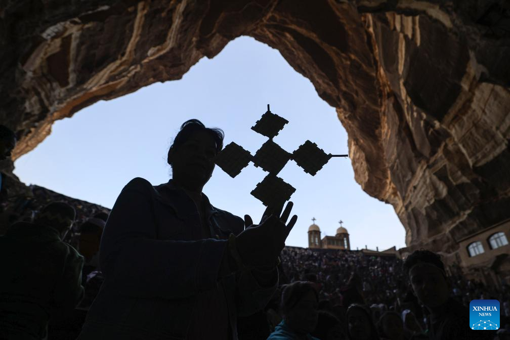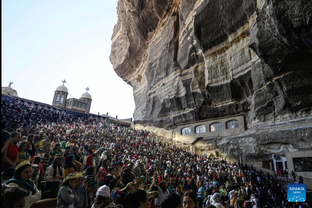 Christians attend a mass held to celebrate Palm Sunday at the Cave Church in Cairo, Egypt, April 13, 2025. (Xinhua/Ahmed Gomaa)