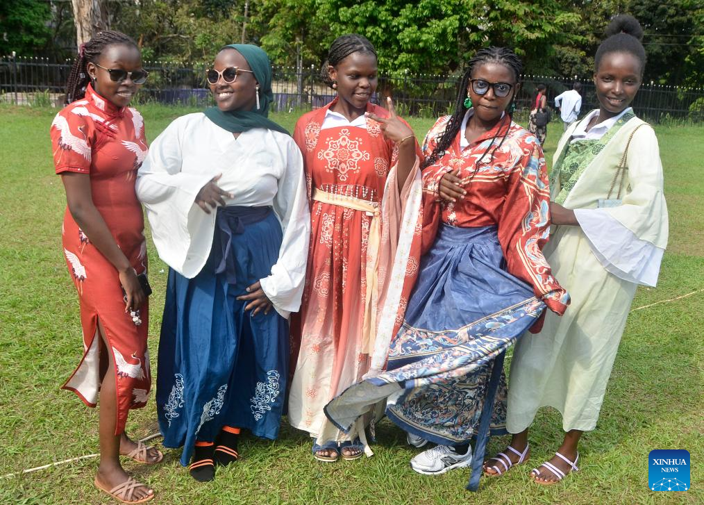 Students of Confucius Institute at Makerere University entertain visitors with a dance during an International Chinese Language Day event at Makerere University in Kampala, Uganda, April 17, 2025. TO GO WITH "Ugandan students celebrate International Chinese Language Day with cultural performances" (Photo by Nicholas Kajoba/Xinhua)