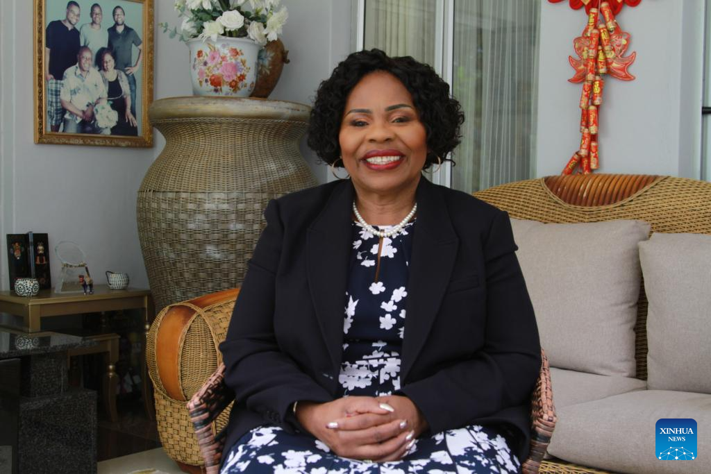 Monica Mutsvangwa, Zimbabwe's minister of women affairs, community, small and medium enterprises development, speaks with Xinhua in Harare, Zimbabwe, April 17, 2025. (Xinhua/Tafara Mugwara)