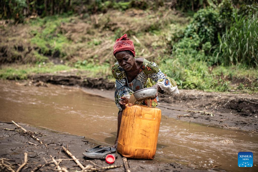 Displaced people fetch water from a river in the town of Sake, the Democratic Republic of the Congo (DRC), April 25, 2025. (Photo by Zanem Nety Zaidi/Xinhua)