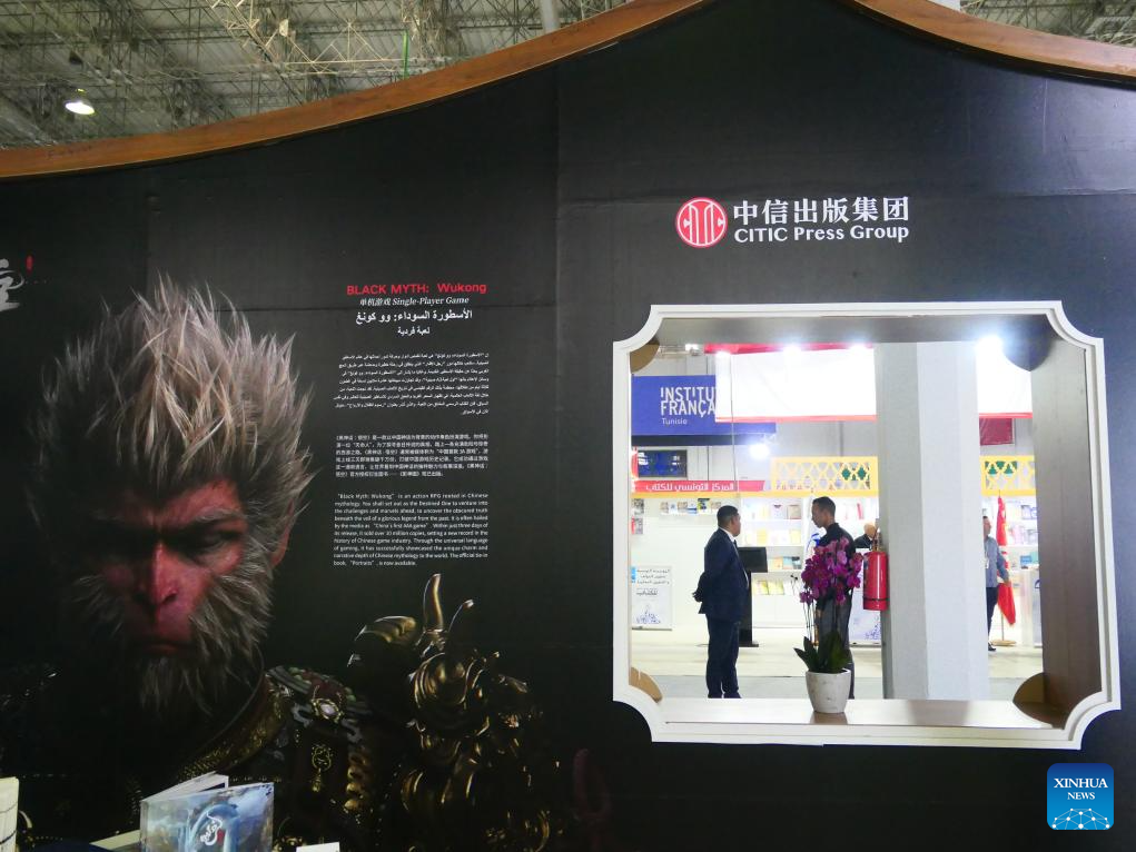 Photo taken on April 25, 2025 shows Chinese exhibition area of the 39th edition of Tunis International Book Fair in Tunis, Tunisia. The 39th Tunis International Book Fair kicked off here on Friday, with China as the guest of honor, presenting a diverse collection of Chinese publications. (Xinhua/Huang Ling)