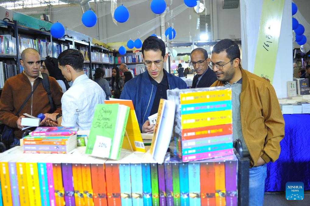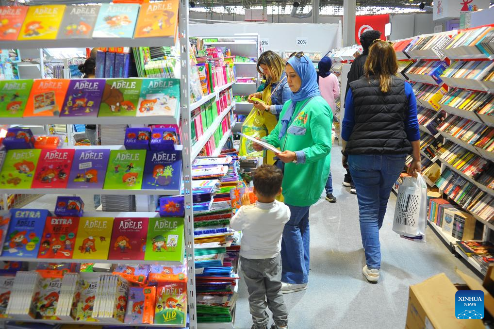 People select books during the 39th Tunis International Book Fair in Tunis, Tunisia, April 26, 2025. The fair is held here from April 25 to May 4, with China as the guest of honor. (Photo by Adel Ezzine/Xinhua)