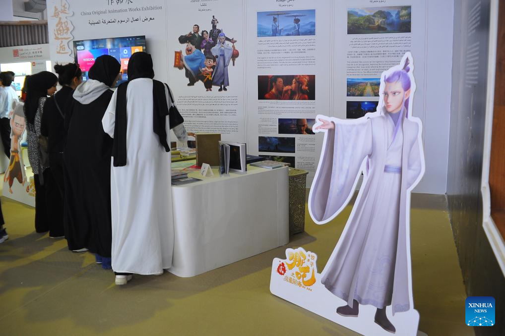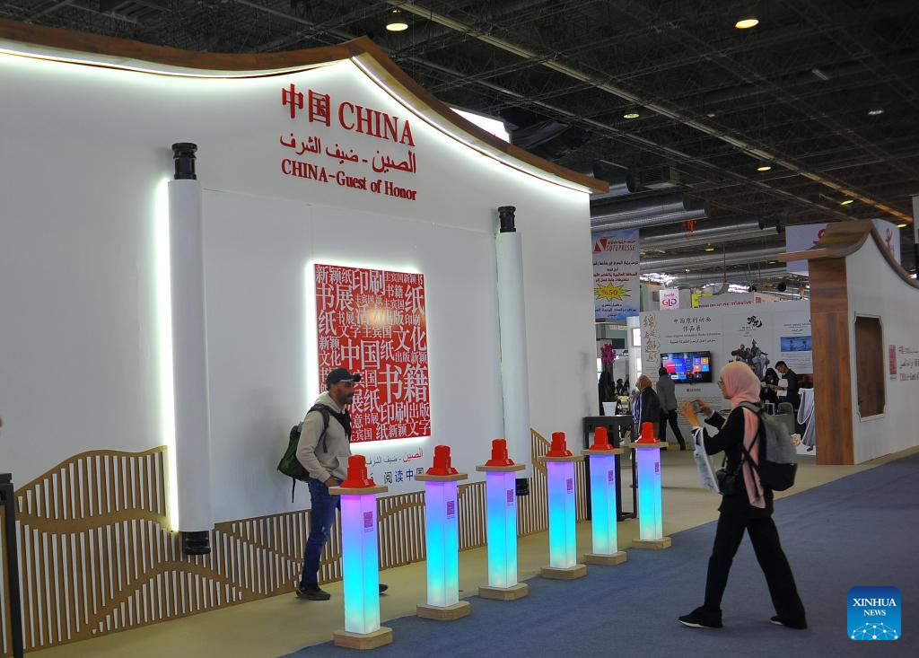 People visit the booth of China during the 39th Tunis International Book Fair in Tunis, Tunisia, April 26, 2025. The fair is held here from April 25 to May 4, with China as the guest of honor. (Photo by Adel Ezzine/Xinhua)