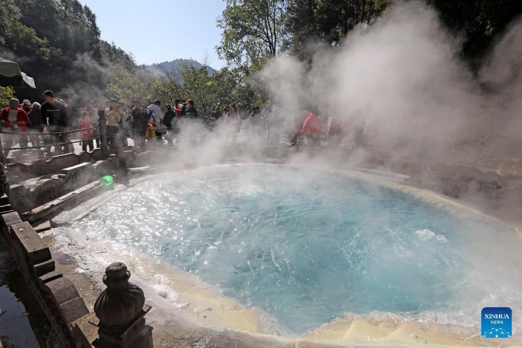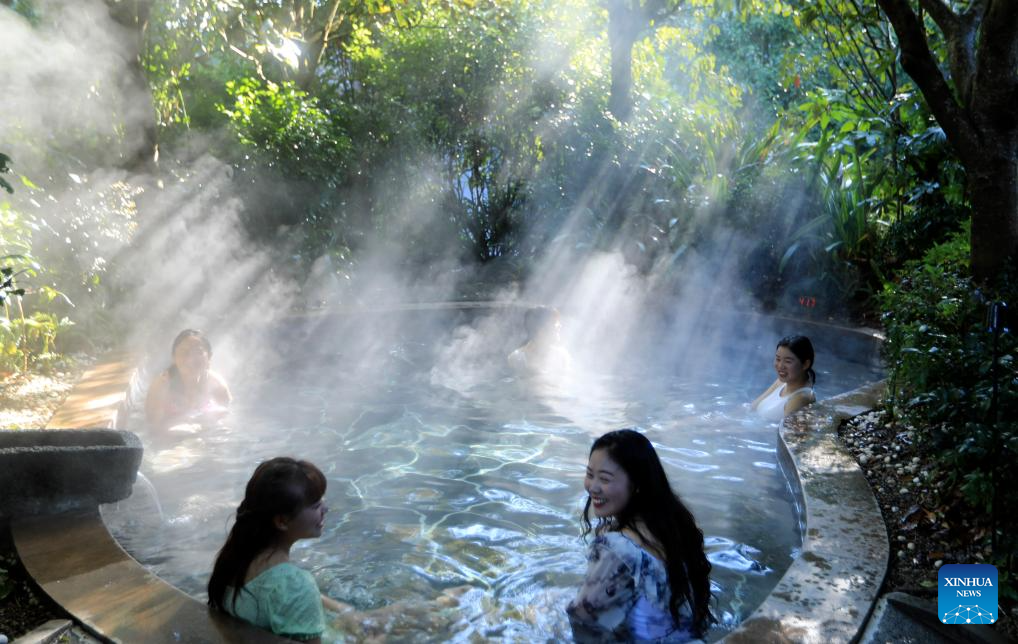 Tourists bathe themselves in a hot spring in Tengchong, southwest China's Yunnan Province, Jan. 20, 2025. Home to 99 active and extinct volcanoes, Tengchong is rich in geothermal resources. The city's environment is known by locals as being "half water half fire," a feature that has been utilized to develop tourism. (Photo by Gong Zujin/Xinhua)