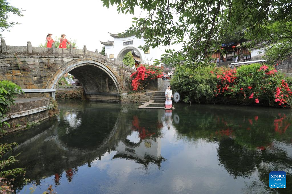 This photo taken on April 25, 2025 shows an alleyway with a volcanic rock facade in Tengchong, southwest China's Yunnan Province. Home to 99 active and extinct volcanoes, Tengchong is rich in geothermal resources. The city's environment is known by locals as being "half water half fire," a feature that has been utilized to develop tourism. (Xinhua/Liu Lianfen)