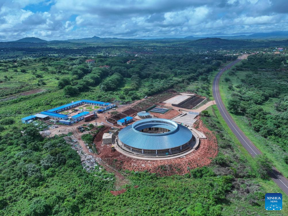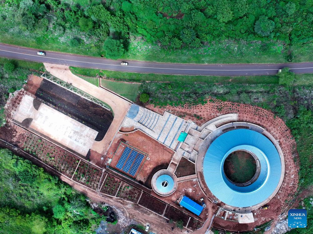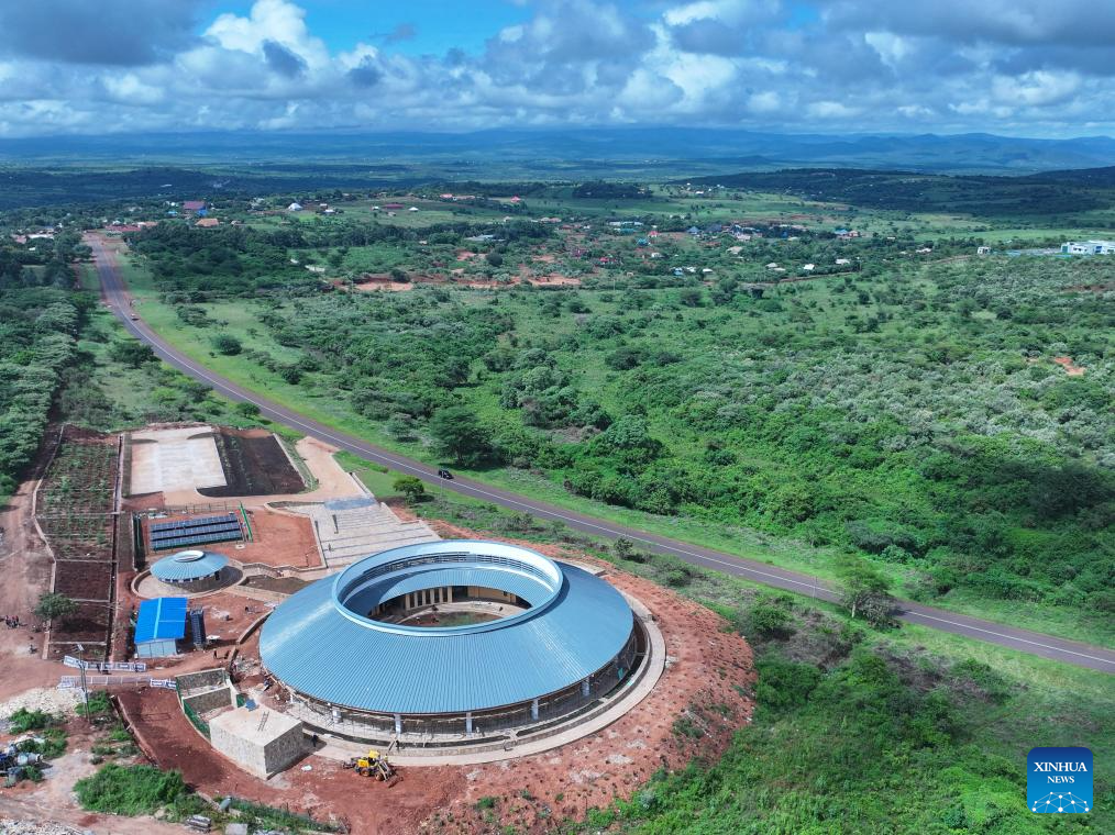 An aerial drone photo taken on April 26, 2025 shows the construction site of a museum at the Ngorongoro Lengai UNESCO (United Nations Educational, Scientific and Cultural Organization) Global Geopark in Arusha region, Tanzania. (Xinhua/Li Yahui)
