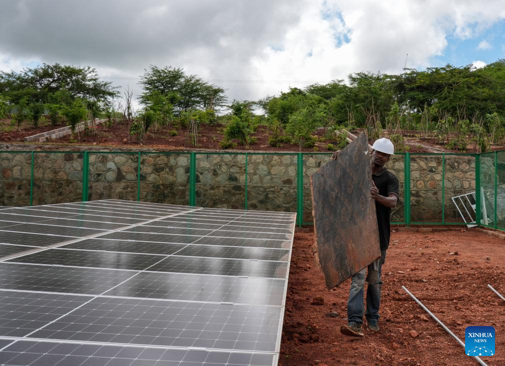 A worker works at the construction site of a museum at the Ngorongoro Lengai UNESCO (United Nations Educational, Scientific and Cultural Organization) Global Geopark in Arusha region, Tanzania, on April 26, 2025. (Xinhua/Li Yahui)
