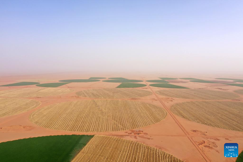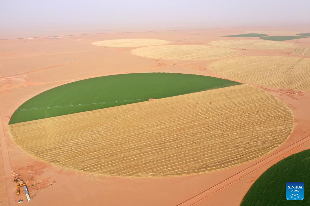 Over the past years, ZPEC branch in Egypt has tackled harsh desert conditions and various challenges, drilling more than 680 wells across the country, which have greatly helped turn vast barren desert into fields. (Xinhua/Sui Xiankai)
