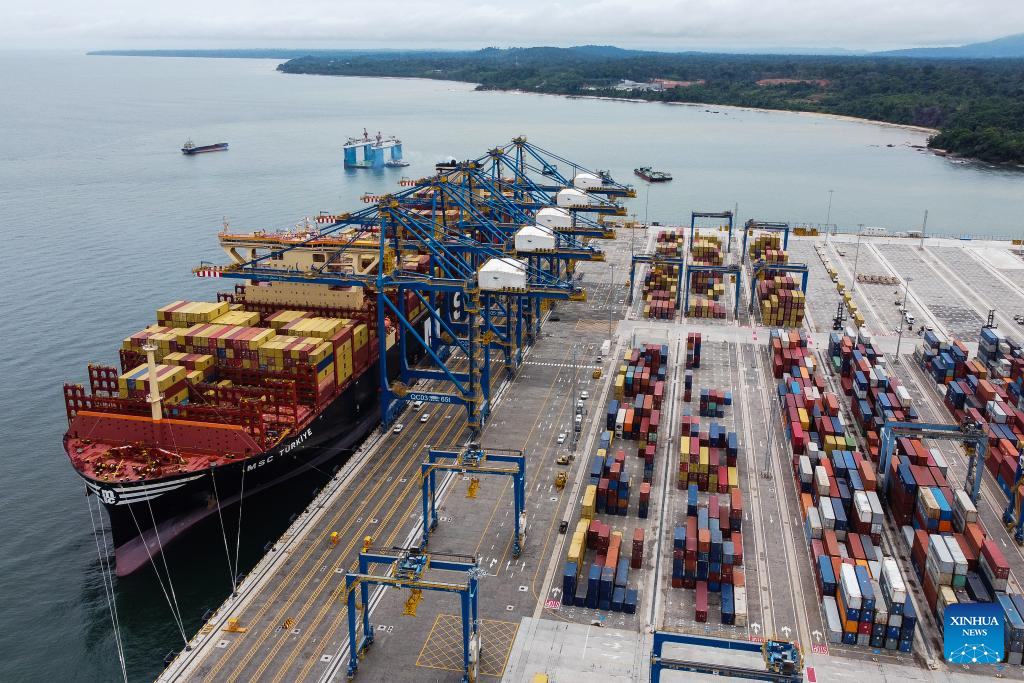 Constructed by the China Harbor Engineering Company Ltd. (CHEC), the Kribi Deep Seaport is the first deep seaport in Cameroon and the biggest in the Central Africa region. (Xinhua/Kepseu)