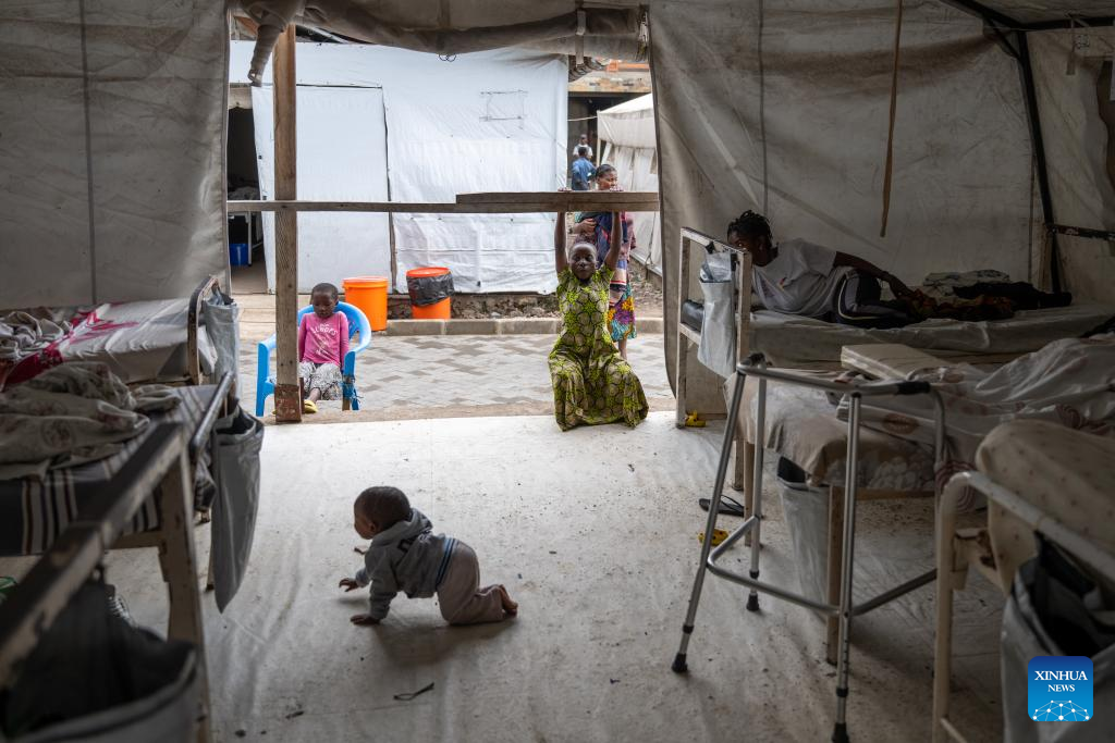 This photo taken on May 10, 2025 shows a scene inside Ndosho Hospital in Goma, the Democratic Republic of the Congo (DRC). Ndosho Hospital, located in Goma, the capital city of North Kivu province in the eastern DRC, has built temporary tents in its parking lot to relieve pressure and increased its bed capacity to approximately 130, as the security situation in the eastern DRC has deteriorated in recent years. (Xinhua/Zheng Yangzi)