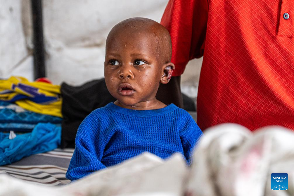 A child with an ear injury caused by the local conflict is seen at Ndosho Hospital in Goma, the Democratic Republic of the Congo (DRC), on May 10, 2025. Ndosho Hospital, located in Goma, the capital city of North Kivu province in the eastern DRC, has built temporary tents in its parking lot to relieve pressure and increased its bed capacity to approximately 130, as the security situation in the eastern DRC has deteriorated in recent years. (Xinhua/Zheng Yangzi)