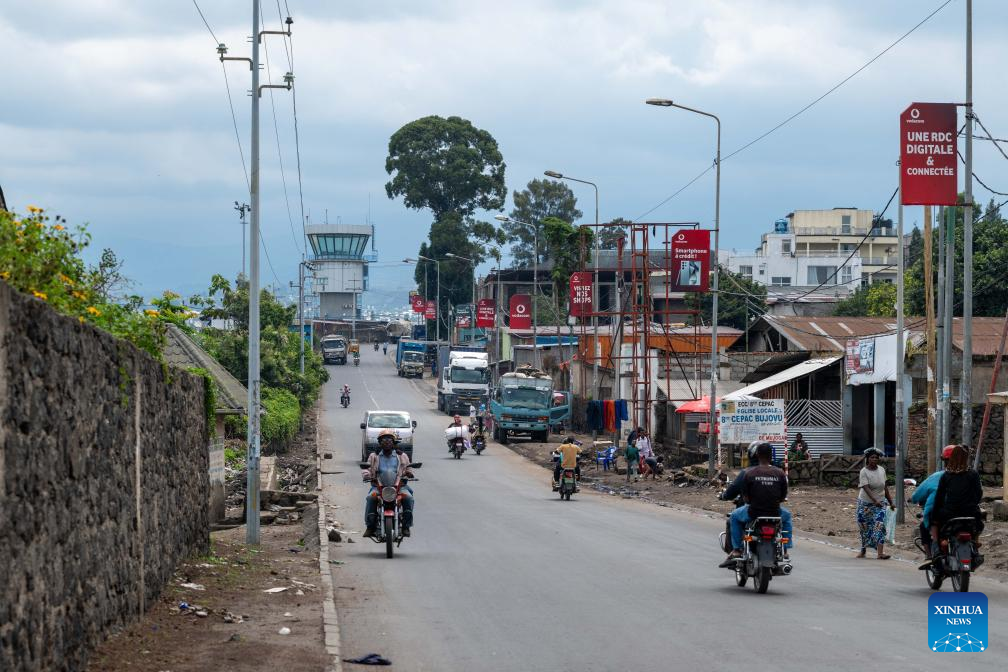 GOMA, DR Congo, May 14 (Xinhua) -- Once a bustling border hub nestled beneath the imposing silhouette of Mount Nyiragongo, the city of Goma in the eastern Democratic Republic of the Congo (DRC) has now fallen under a tense and uneasy calm.