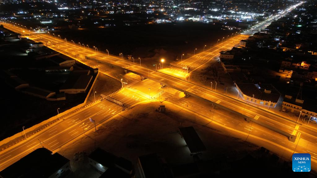 Photo taken on May 15, 2025 shows Sino-Mauritanian Friendship Overpass in Nouakchott, Mauritania. (Chinese Embassy to Mauritania/Handout via Xinhua)
