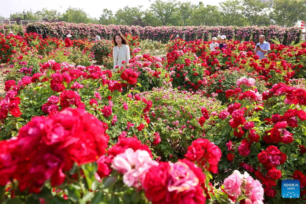 Tourists enjoy flowers at a park in Zaozhuang, east China's Shandong Province, May 19, 2025. This year's May 19 marks the 15th China Tourism Day. (Photo by Sun Zhongzhe/Xinhua)